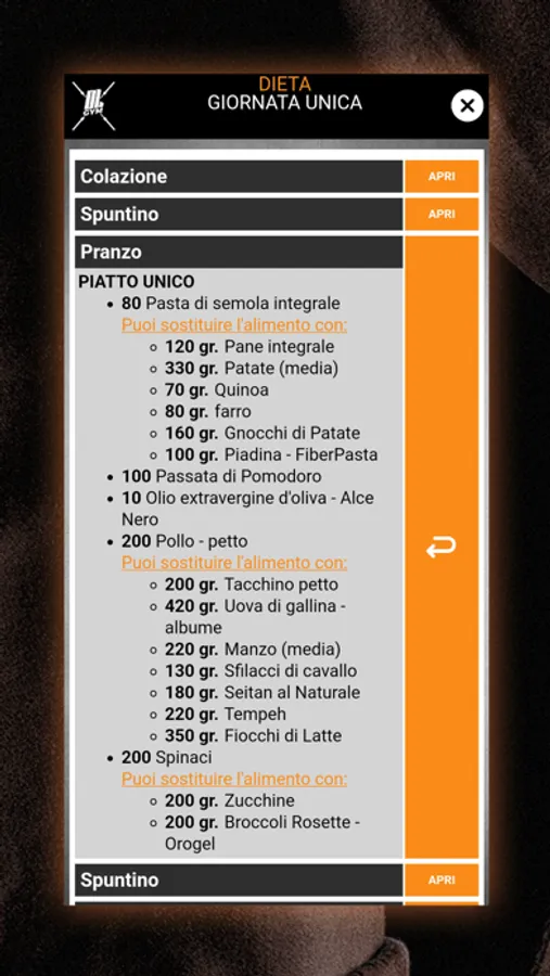 • Segui la dieta alla perfezione visionando ogni pasto della giornata.