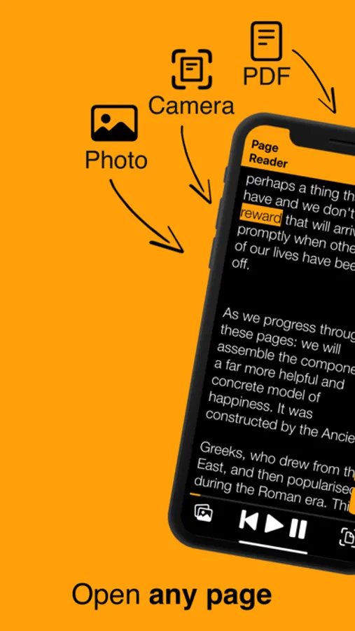 Turn any page into an audiobook using Page Reader’s intelligent text-recognition & audio player.