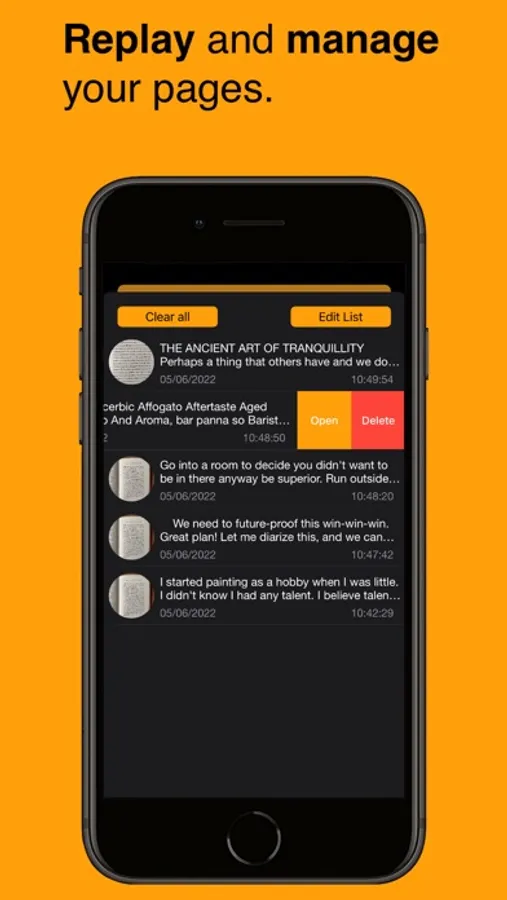 Browse history and re-listen to your pages.