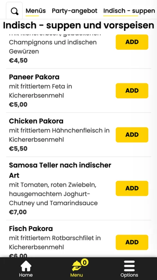 - Durchsuchen Sie die Speisekarte des Restaurants und sehen Sie sich alle anpassbaren Optionen im Voraus an
