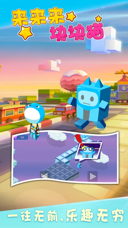不断挑战,不断前进,做一只大胆的方块猫,赢取宝石,努力升级,看谁能一直跑到世界尽头。