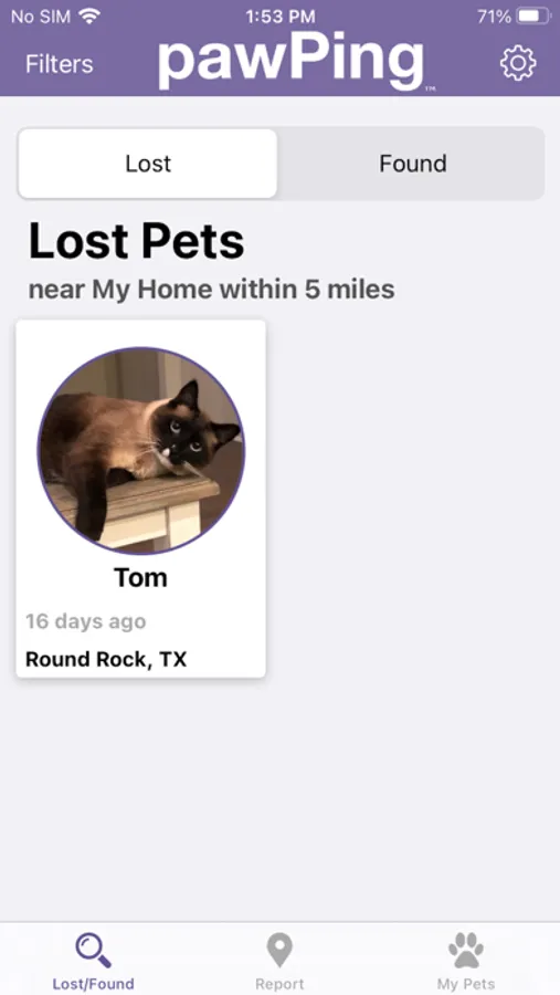 - Notifications sent to you and the pawPing Network near where the pet first became missing.