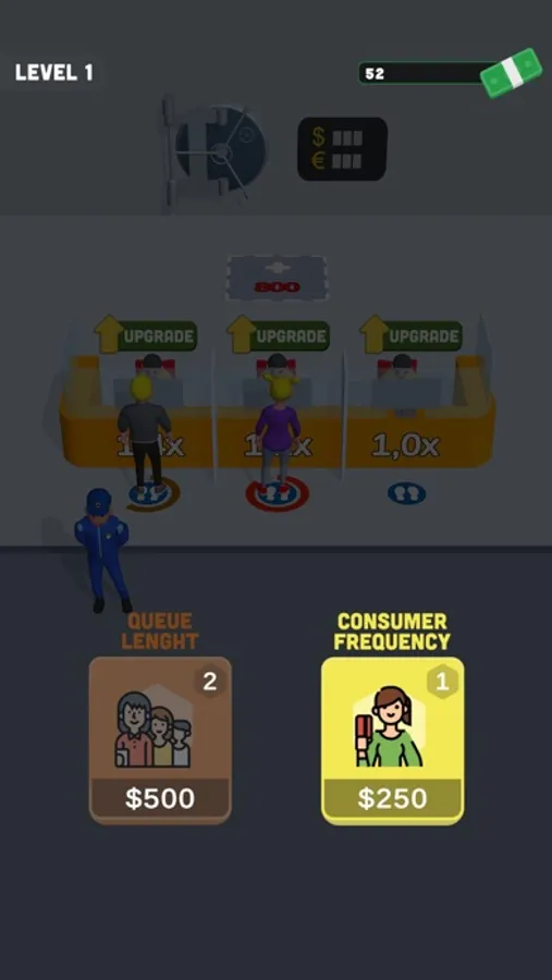 Place your customers to proper cash desks to earn more money! Don't forget to upgrade your workers.