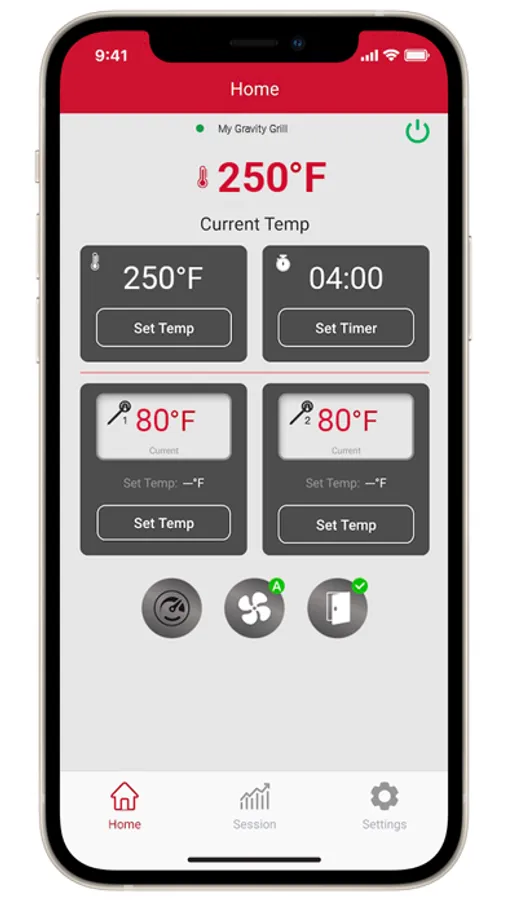 New from Char-Griller: the Charcoal Grill Perfected. Smoke, Grill , Sear and more wirelessly using the Char-Griller Gravity App on your smart device. Local Wifi and Bluetooth connectivity help you do it all with the push of a button or the tap of a screen. This all new app allows you the ultimate control over your cook. Adjust the grill temperature, monitor the internal temperature of your food, and more with the Char-Griller Gravity app.