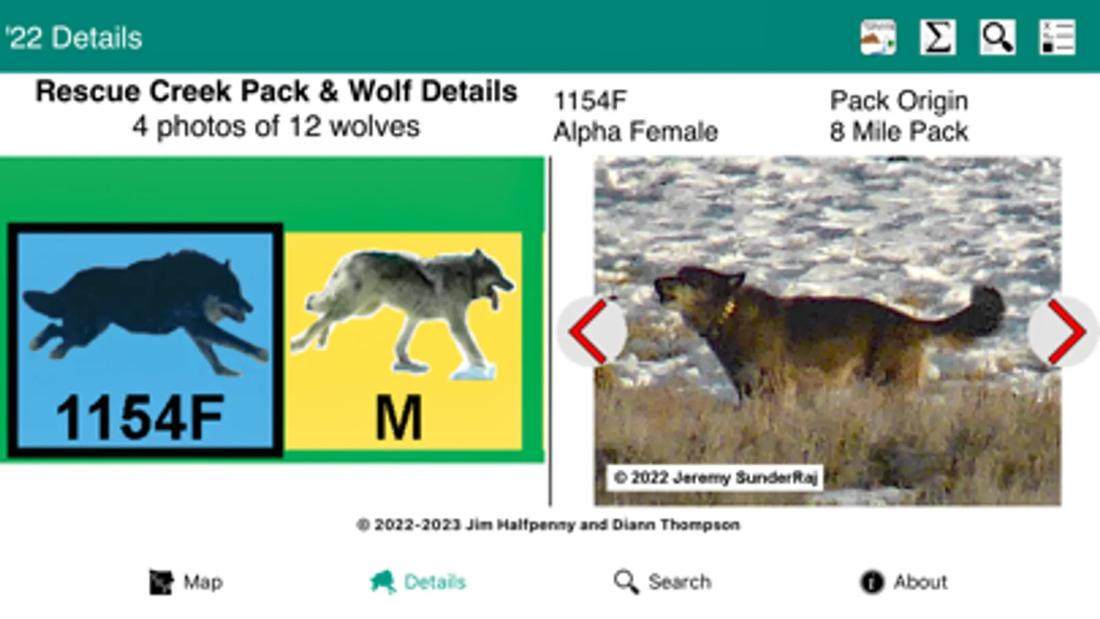 - Details - main information for selected Pack & Wolves is shown first