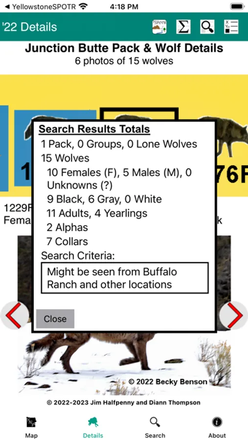In addition, Yellowstone SPOTR provides a function in the details for a Pullout. You can choose from a list of installed Yellowstone Wolves apps to show which Packs might be seen from that Pullout.