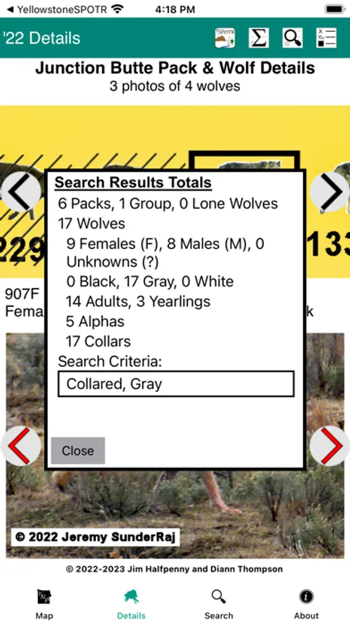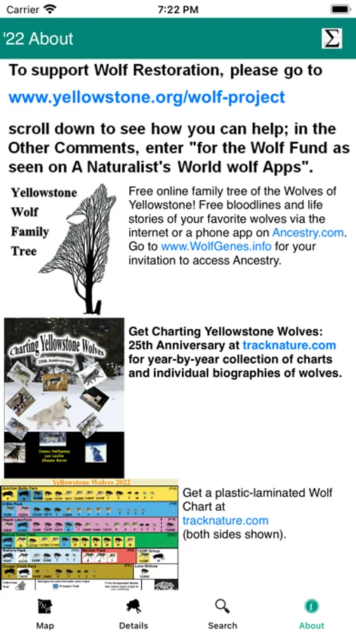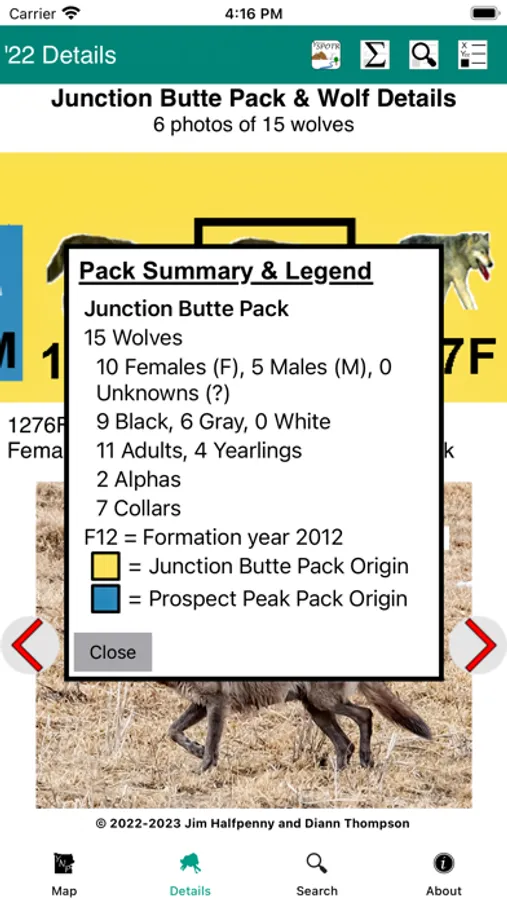As we celebrate the 150th anniversary of the establishment of Yellowstone NP, we also observe the 27th year since the gray wolves were restored to the park. Yellowstone Wolves 2022 provides a snapshot of Packs, Territories & Wolves plus interfaces with Yellowstone SPOTR to relate Packs & Pullouts. Version 1.1 adds support for large-screen devices (e.g., macOS) & keyboard entry.