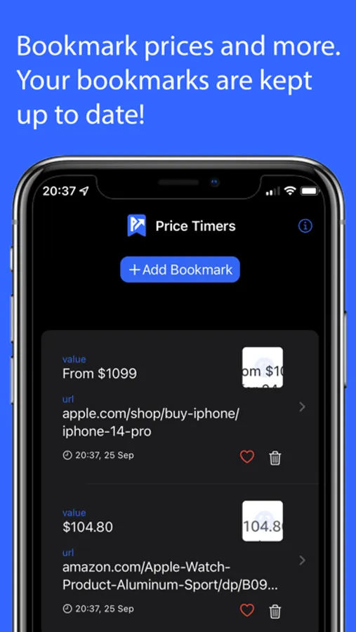 Price timers helps you get updates from your favourite bookmarks. You can select a website and price timers will keep you updated with the latest information.