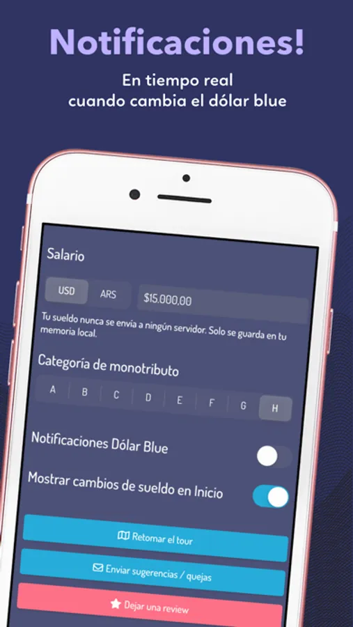 * recibir notificaciones cuando cambia la cotización de distintos dólares del mercado.