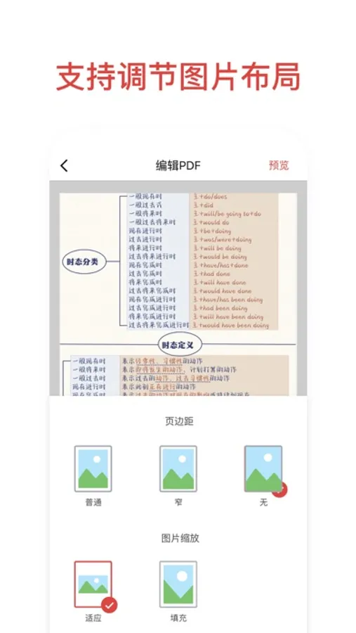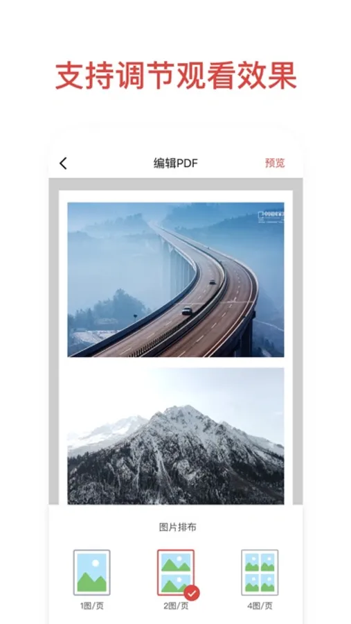 2). 支持图片排版,目前支持一页一张,一页两张,一页四张等多种排版。