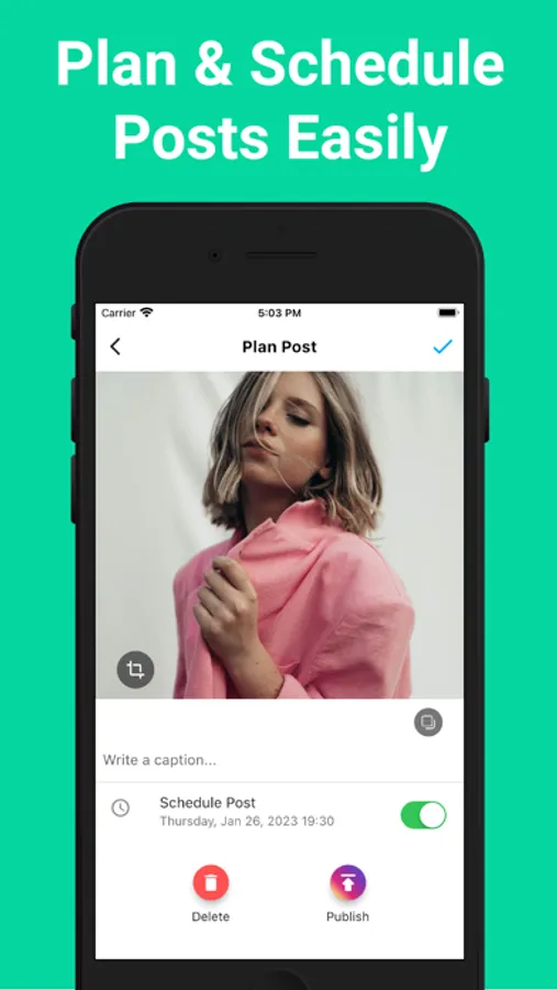 - Captions: Write captions in your posts plannings. Caption will be copied to your clipboard when you publish on your account.