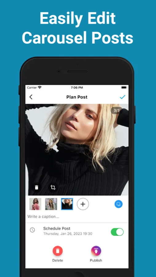 - Carousel Posts: Create carousel easily using our in-house editor.