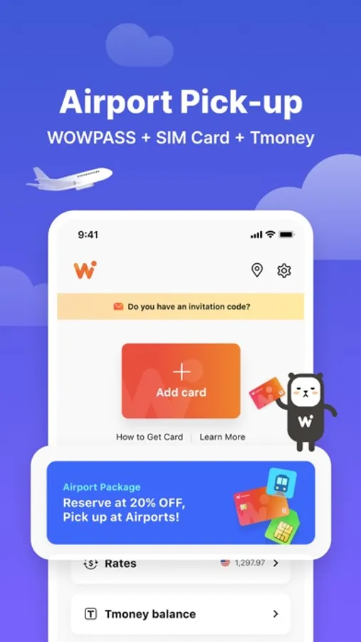 - Reserve WOWPASS Card + SIM Card + Tmoney balance in a single package at discounted prices, and pick it up at major airports in Korea.
