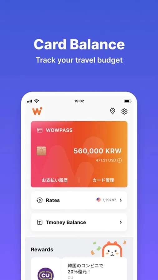 - Add your WOWPASS card on the app to check the balance, which is also shown in your preferred foreign currency.