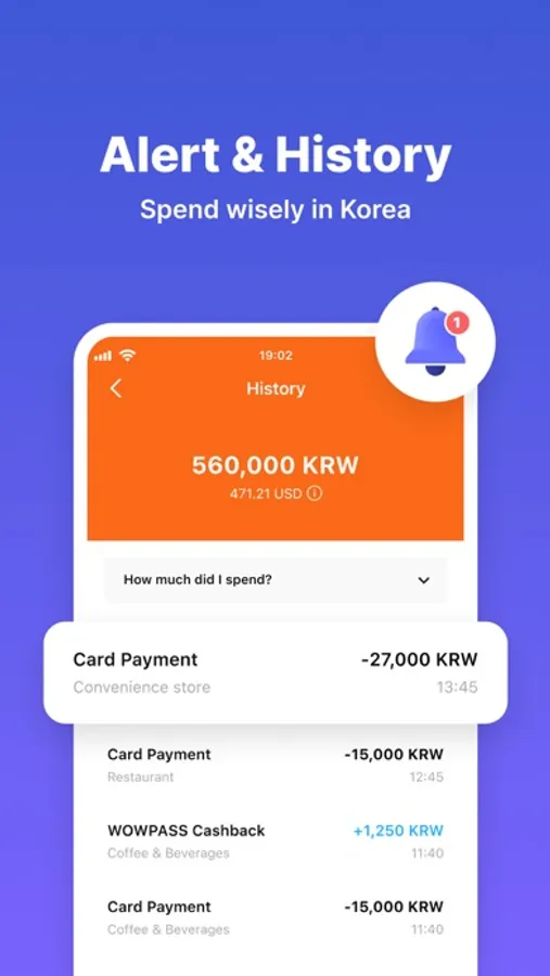 - Receive push alerts and view the exact payment amount in KRW in real-time.
