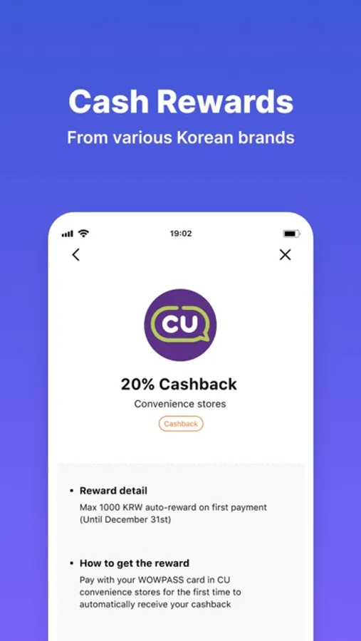 - Receive up to 20% cashback on payments made to Korean brands in real-time.