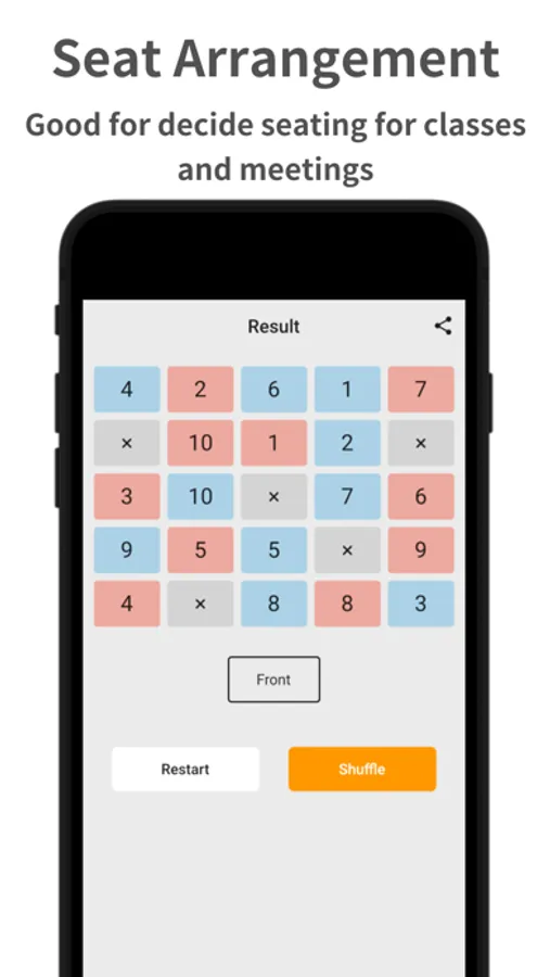 A seat arrangement app that can be used for classes, parties, and many other situations.
