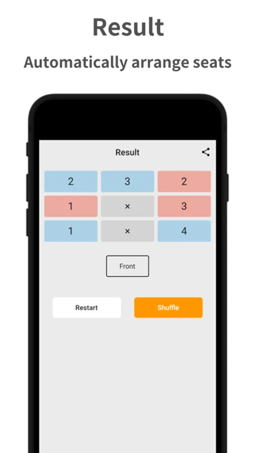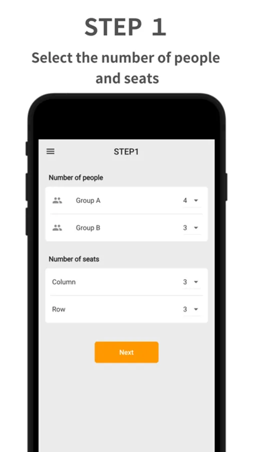 Select the number of seats, the number of people, and the seats that will not be used, and the app will then automatically arrange the seats.