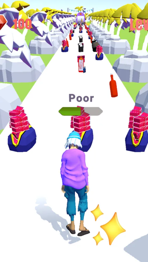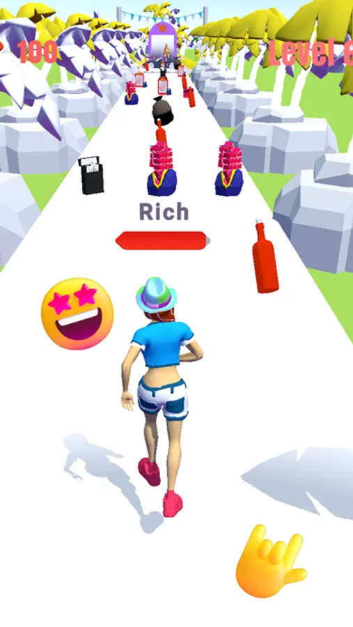 In Happy Island Run 3D, you play as a character who is working hard to become richer and wealthier. In order to do this, you'll need to collect items and accessories that will help you become richer. If you collect bad items, you will become poorer. Happy Island Run 3D progresses through different levels, each with its own challenges and rewards. As you level up, you'll be able to afford nicer things such as accessories, dress-up, and more options available to you. Keep an eye out for the best deals, because in Happy Island Run 3D it's all about becoming the richest player around!