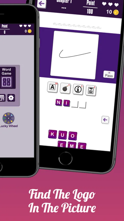 • Get letters to help solve the logo quiz, skip the question, unused letters, brand's country and industry information, and blurry picture clues,