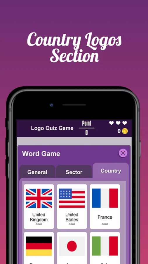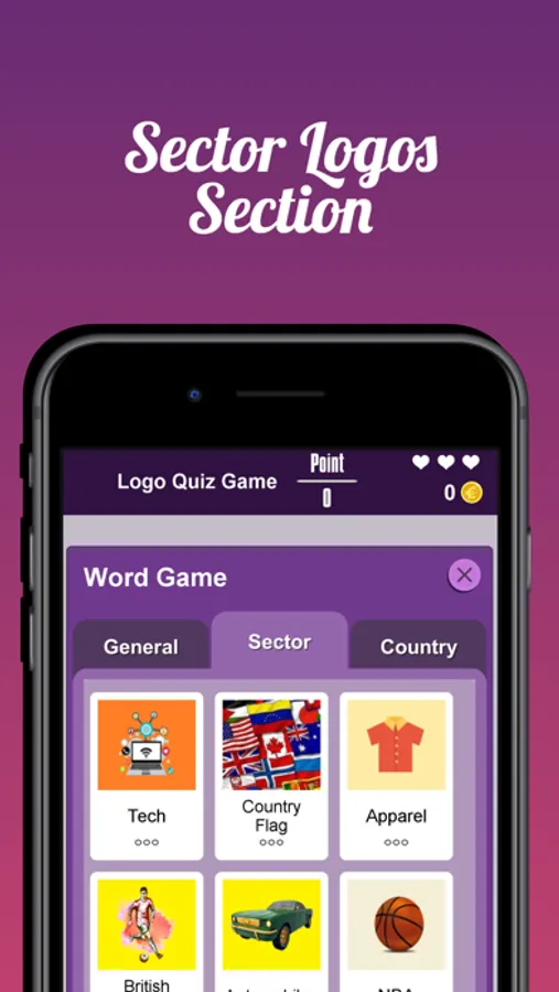 • Fun categories with General Logos, Country Logos and Sector Logos sections,
