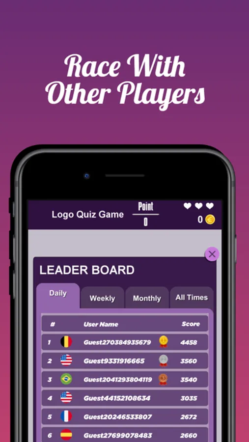 • Two different types of logo games by typing the brands of the logos or as multiple choice,