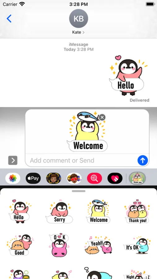 Fun and Cute with "Cute Penguin 7 stickers" pack. It is always ready to add more emotion to your text.