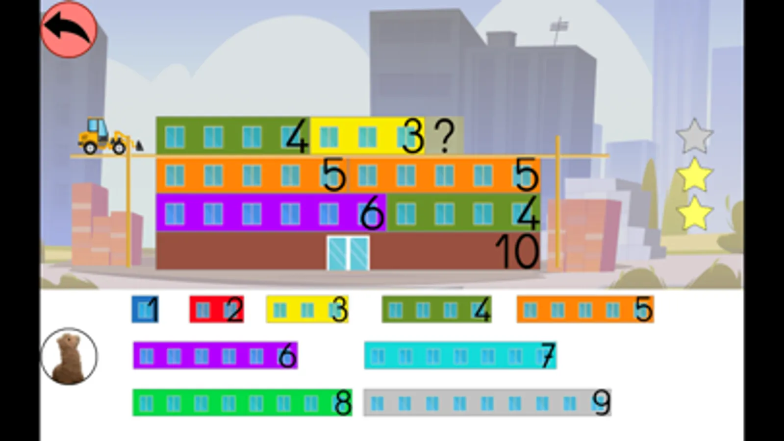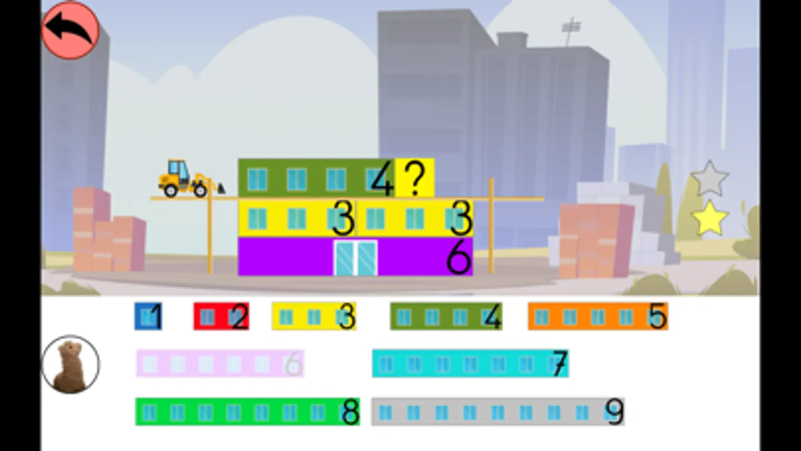 Après avoir choisi un nombre cible, l'enfant doit construire plusieurs étages en cliquant sur les blocs.