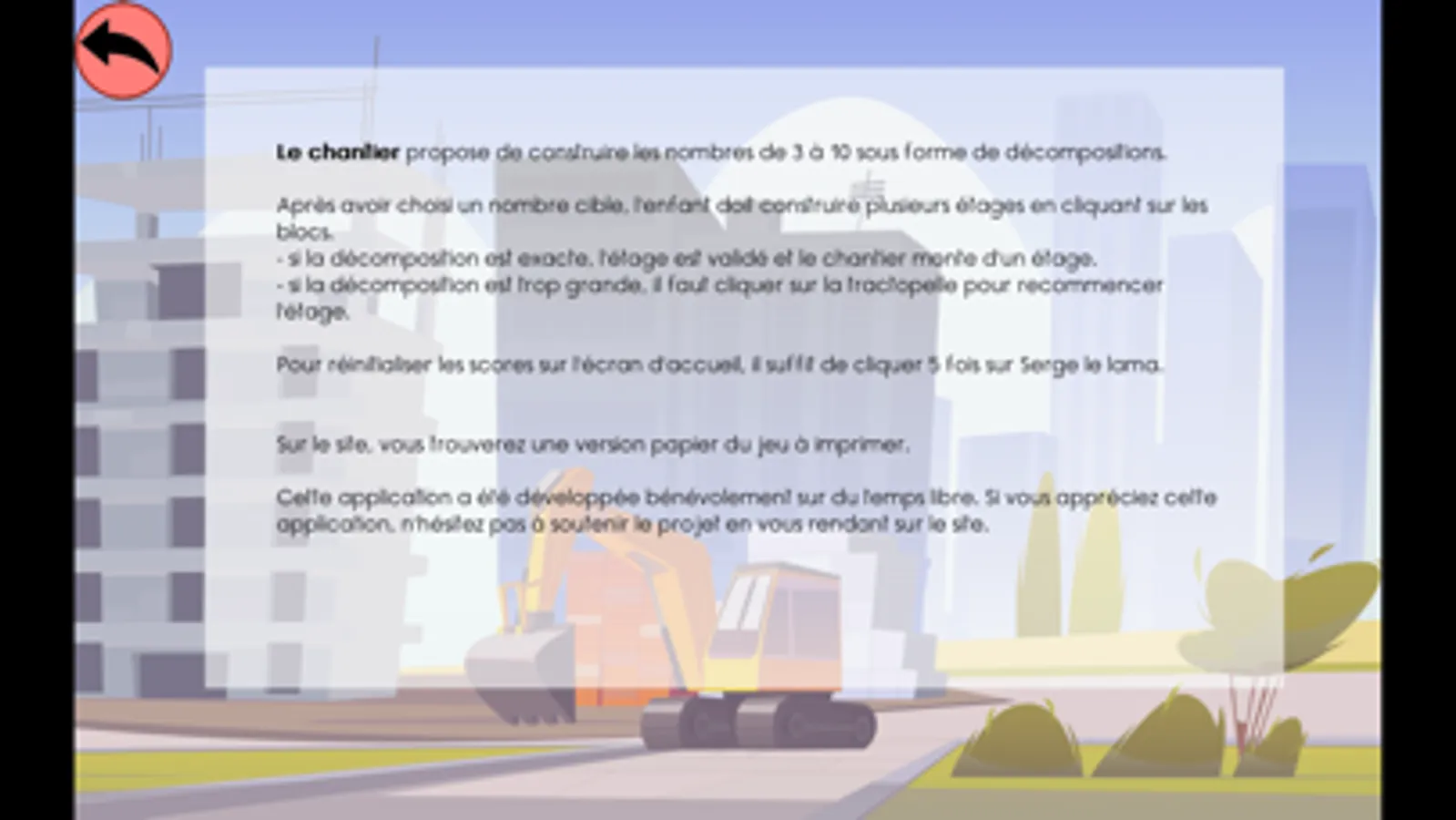 - si la décomposition est trop grande, il faut cliquer sur la tractopelle pour recommencer l'étage.