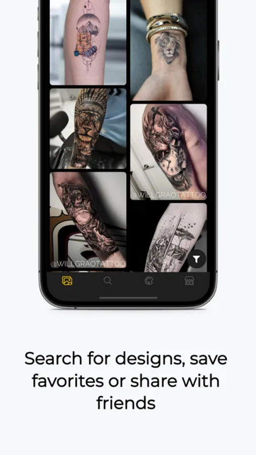 - Find your favorite tattoo in a library full of tattoo designs, be inspired