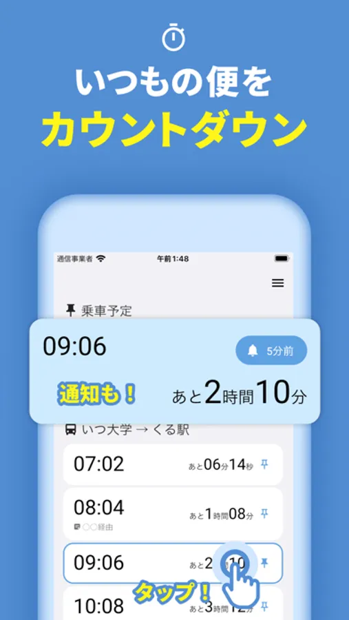 - Check the timetable on the app and immediately know when the next bus is leaving.