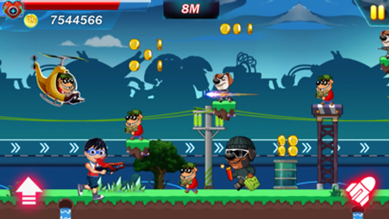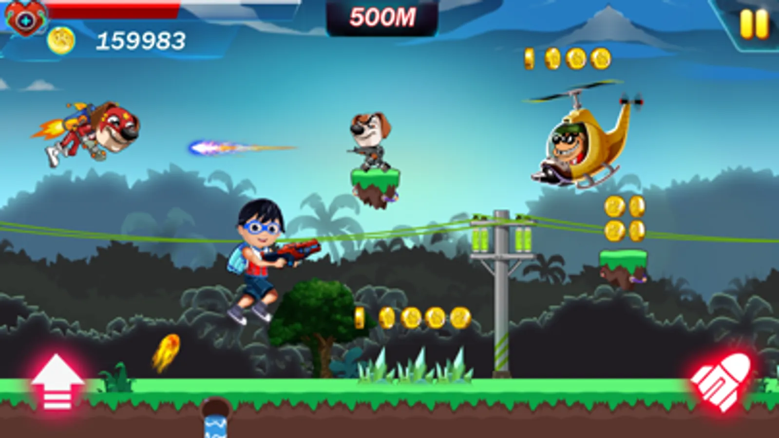 Ryan Puppy Jetfire Fighter, Action and Adventure is an endless war game developed for lovers, you can go without dying using a lot of obstacles in the game fly or a gun in your hand and proceeded to the farthest point aims to reach the highest score.
