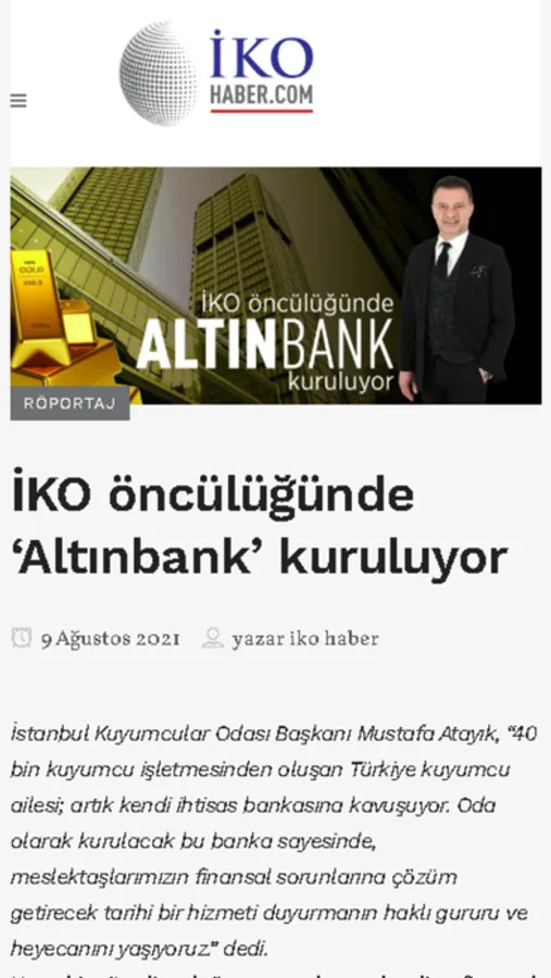 İstanbul Kuyumcular Odası; yayıncılıkta birikimlerini Türkiye’deki tüm meslektaşlarıyla paylaşmak amacıyla İko Haber'i hayata geçirdi.