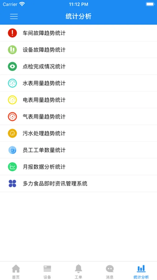 管理工厂设备信息,对设备定时生成预防性工单,包含设备台账、维修管理、抄表管理、点检管理、保养管理、润滑管理、统计分析等功能