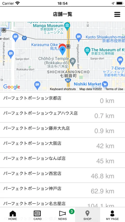 現在地周辺の店舗の検索やお気に入り店舗の登録が行えます。