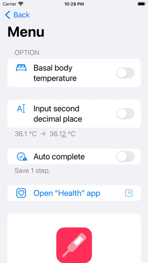 ・Intend to register the data into "Health" app every time, after measuring by a thermometer.