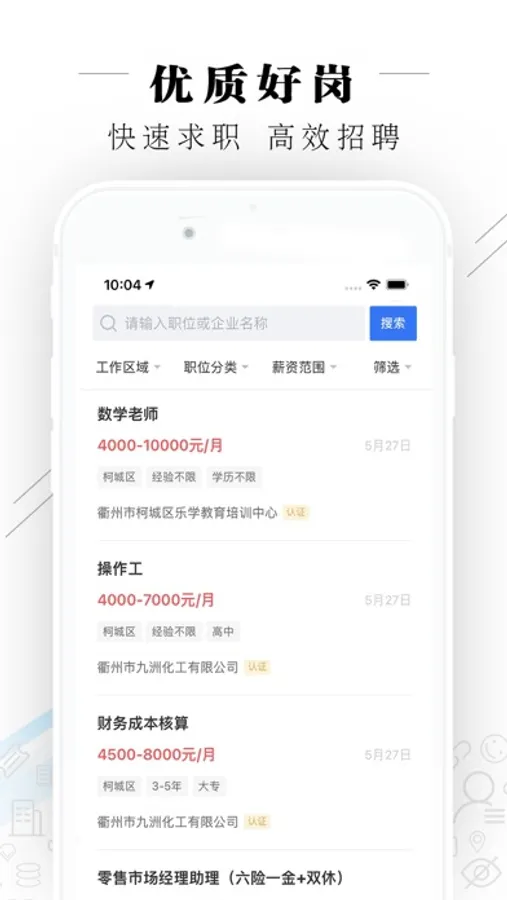 乐活在衢州旗下专业招聘平台!专注于本土化的人才招聘服务!为企业提供招聘渠道,帮助每一个求职者在衢州直聘找到合适的工作!真实靠谱的招聘平台!