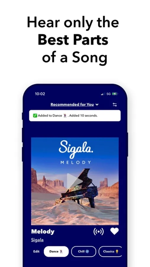 • Discover your next favorite song in seconds. Select your favorite snippet size (5-60 seconds), and let it autoplay for easy discovering