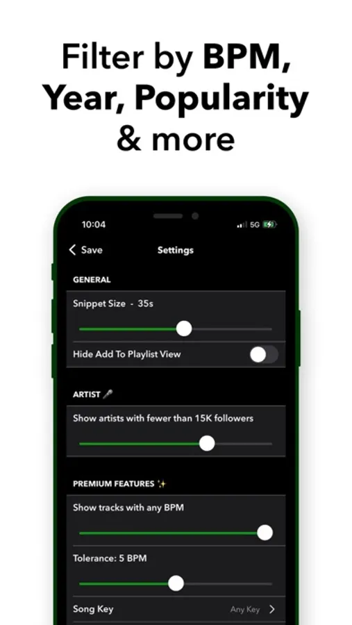 • Discover new, trending and rising indie artists before the go viral with the follower count filter