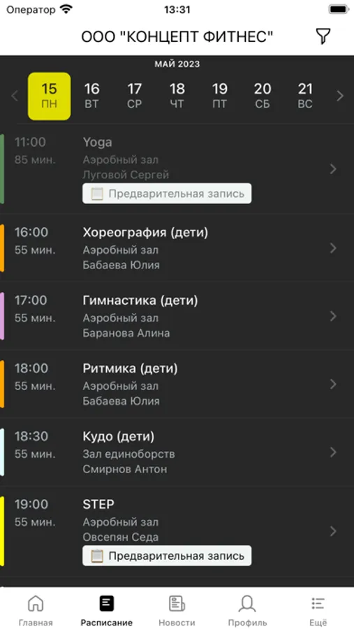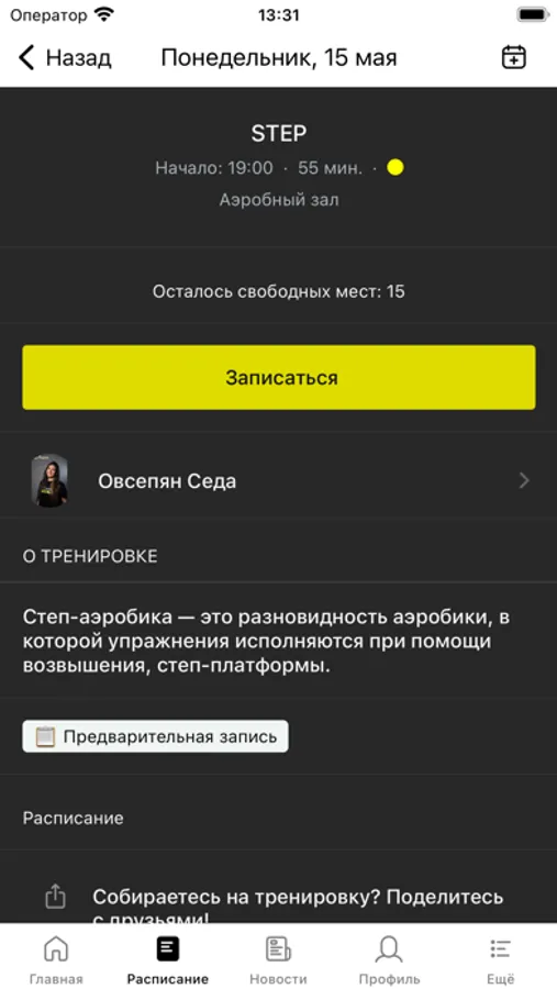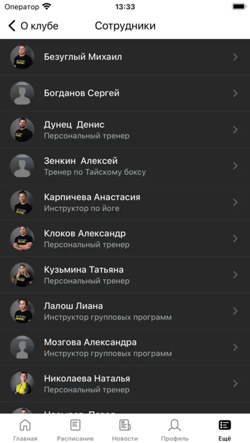 С помощью приложения вы можете следить за новостями, расписанием клуба, оперативно получать информацию об изменениях в расписании и специальных предложениях.