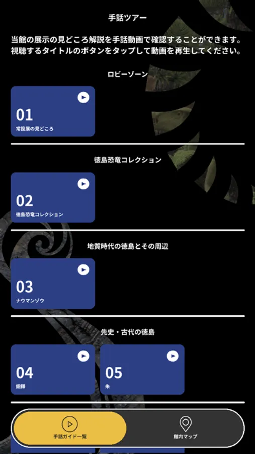 徳島県立博物館の展示解説を手話で見ることができるアプリです。