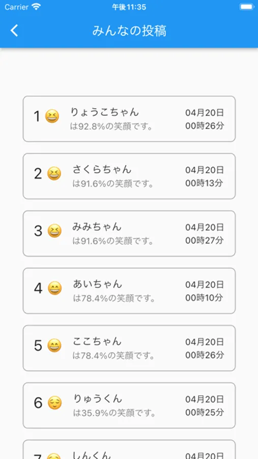 さらに投稿した名前、投稿時間、点数の情報はみんなに共有され、