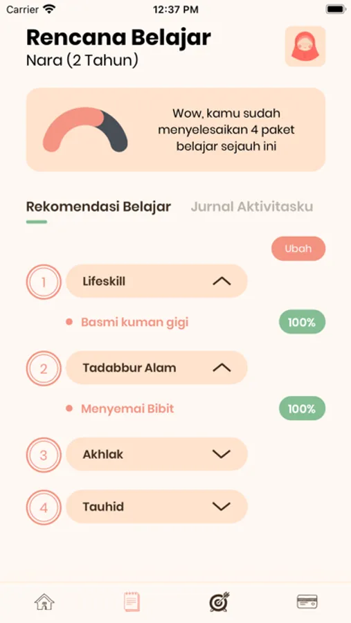 Panduan implementasi sistem pendidikan anak di rumah menggunakan metode quran based play dan learning by experience dengan menyediakan panduan, paket belajar, dan permaian interaktif di setiap tahap perkembangan anak.