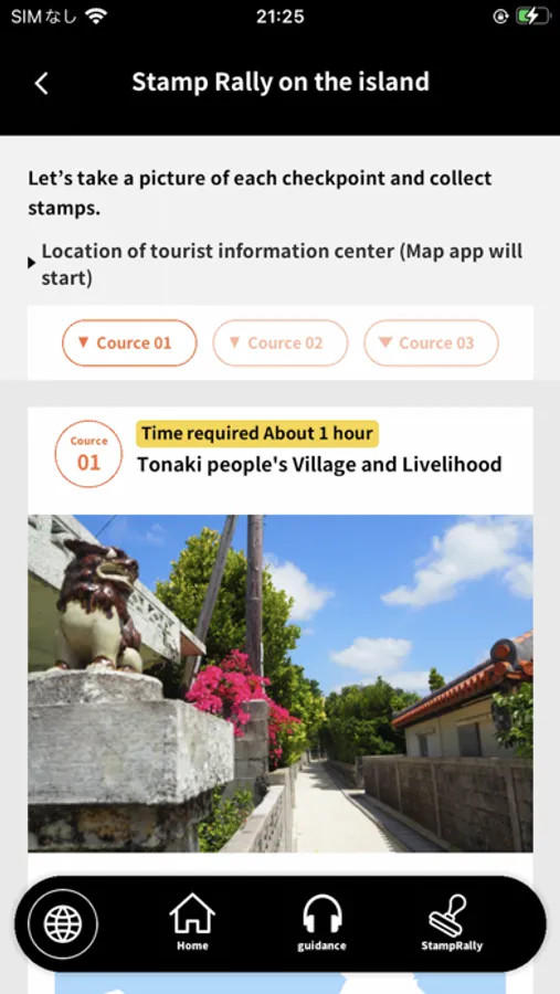 Three stamp rally courses are available for visitors to walk around the village of Tonaki.