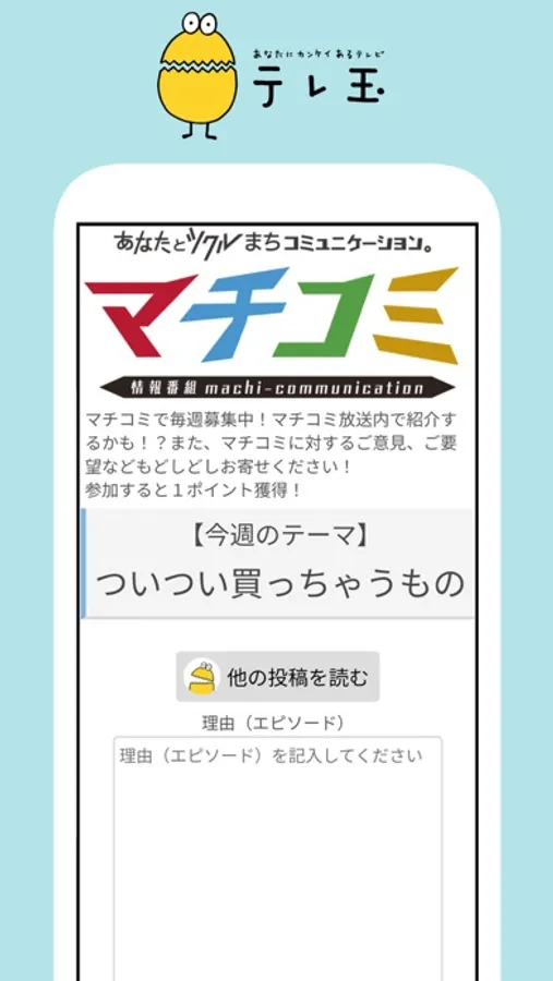 テレ玉アプリをダウンロードすると、アプリ限定でテレビ埼玉の番組に参加できる!アプリでどんどん番組に参加して、ポイントを貯めよう!!あなたの回答がテレビに反映されるかも…?!