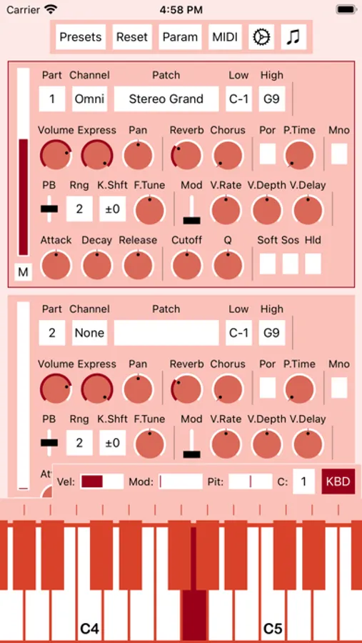 In default, a modifier which adds soft pedal function, and GS Custom Controller mod are being applied. You can select "Original" and disable GS Custom Controller if you want.