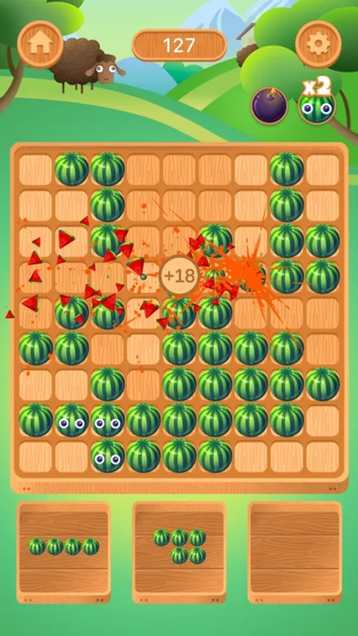 O'yin maydonida tarvuz shakllarini harakatlantiring va ushbu shirador rezavorlarni portlatib, ularni o'yindan olib tashlash uchun ular bilan qatorlar, ustunlar va kataklarni to'ldiring.