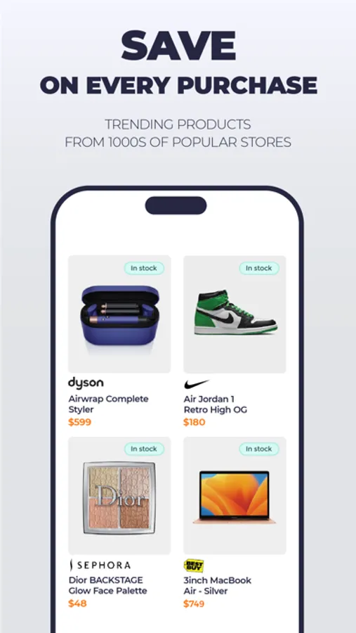 Say goodbye to endless scrolling and hunting for discounts. Our app compares prices from various online retailers and notifies you about more affordable listings on alternative online stores. Save money like never before and enjoy snagging the best bargains.