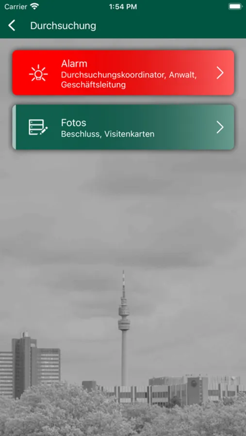 Über die App kann ein HINWEISGEBERSYSTEM integriert werden. Im DURCHSUCHUNGSFALL kann eine Alarmkette mit Notfallnachrichten gestartet werden, damit alle Ansprechpartner sofort informiert werden und Informationen erhalten. Beides setzt eine individuelle Einrichtung über einen Code voraus, der für Sie individuell erstellt wird und den Sie auf Nachfrage erhalten. Kontaktieren Sie uns.