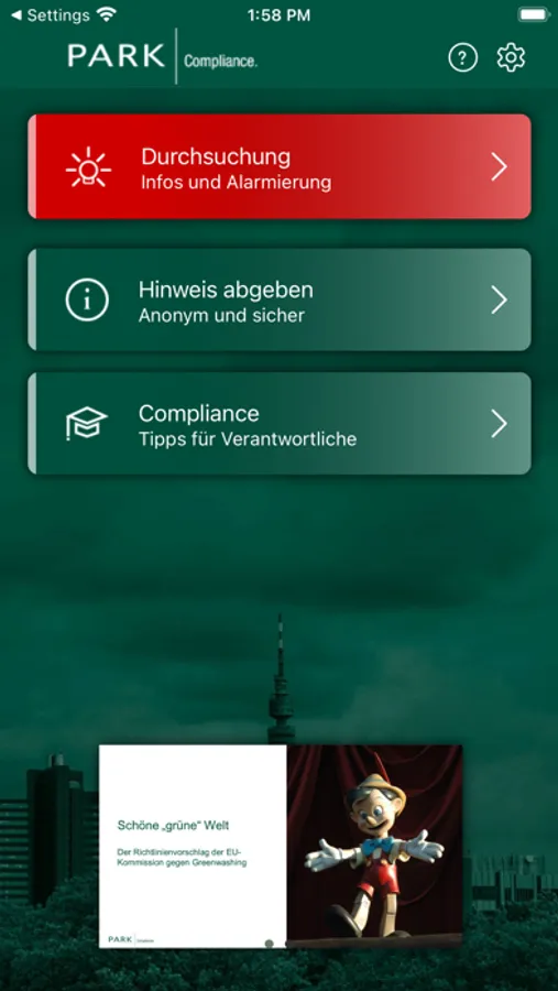 Mit der PARK Compliance-App stellt PARK | Wirtschaftsstrafrecht. eine App vor, die Sie auf den Ernstfall vorbereitet. Halten Sie alle Informationen an einer zentralen Stelle vor und informieren Sie die Schlüsselpersonen mit nur einem Klick.